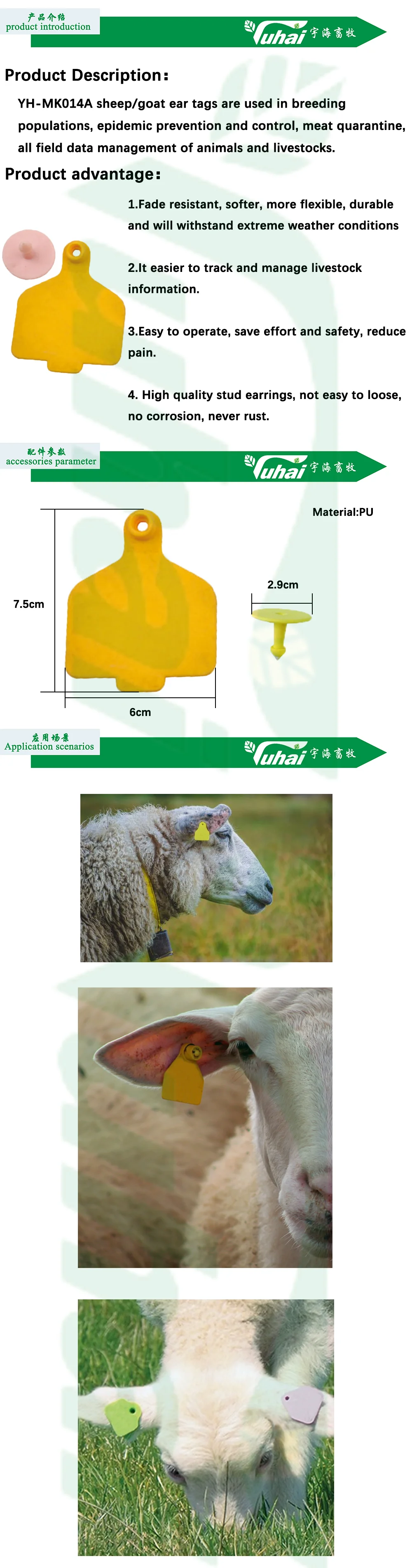 5. Oblast použití: označování velkých nebo středních hospodářských zvířat, jako jsou skot, kráva, prase, kůň, ovce, koza atd.