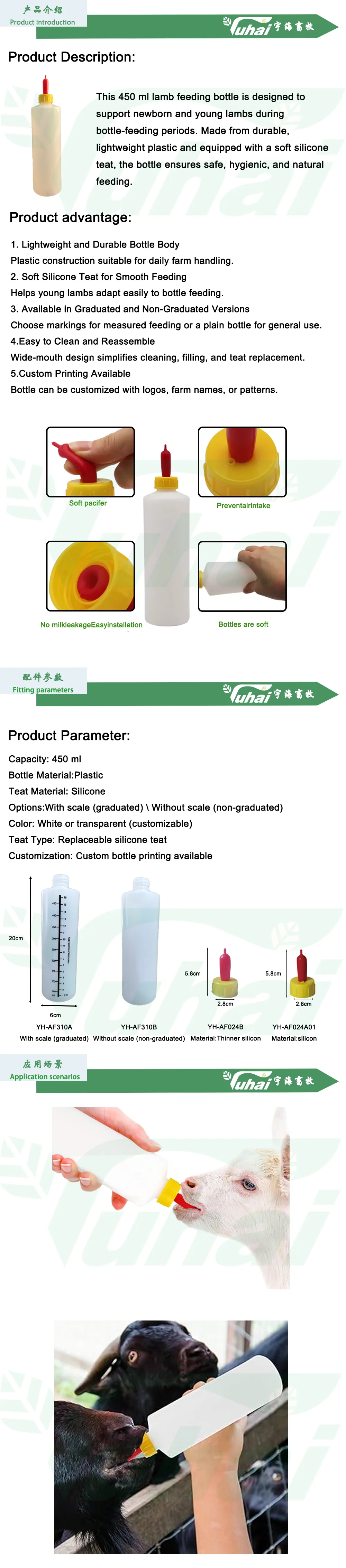 biberon de 450 ml pour agneaux avec tétine en silicone | Biberon en plastique pour agneaux nouveau-nés | Personnalisable