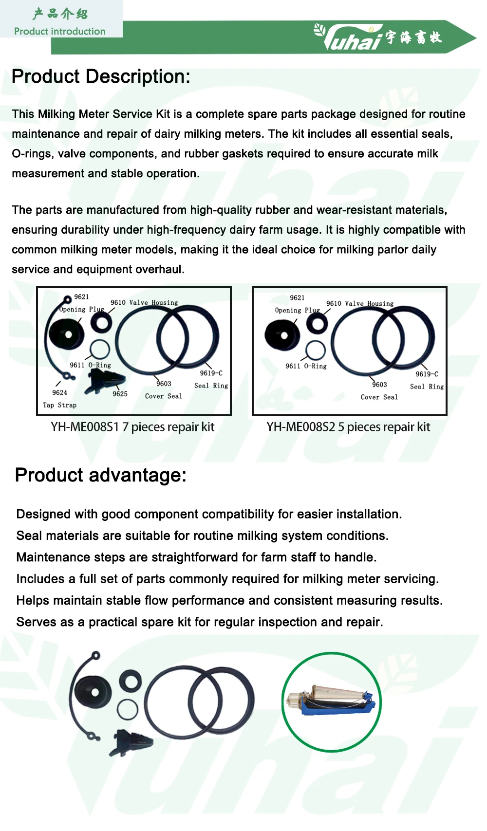 उत्पादकता रबर सामग्री दुग्ध मीटर सर्विस किट बकरी दुग्ध मशीन भागों के लिए