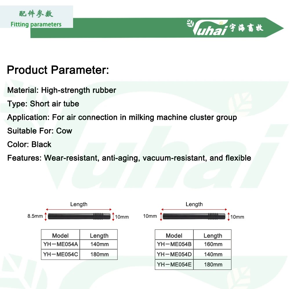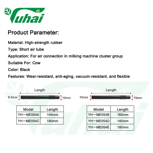 YUHAI शॉर्ट पल्स रबर होज़ मिल्किंग मशीन पार्ट्स के लिए उच्च उत्पादकता 180x8.5x10 मिमी ज़ेंजियांग