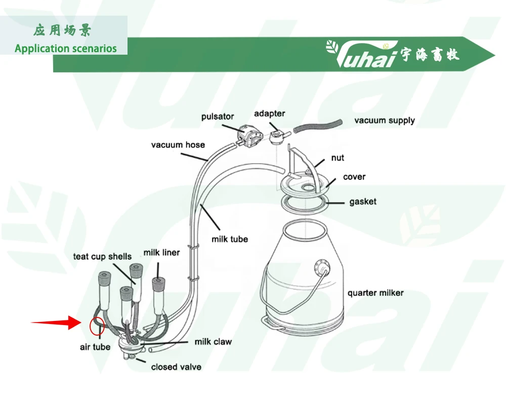 दूध निकालने की मशीन के समूह में वायु संयोजन के लिए