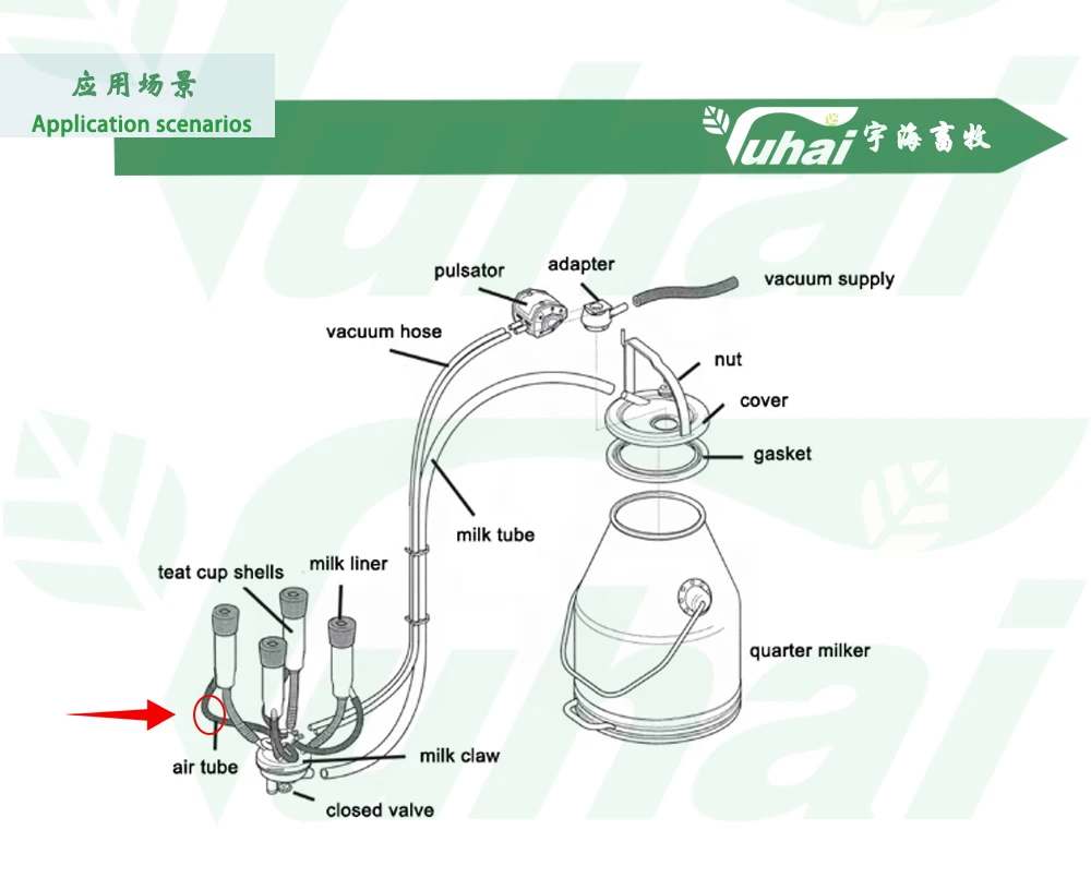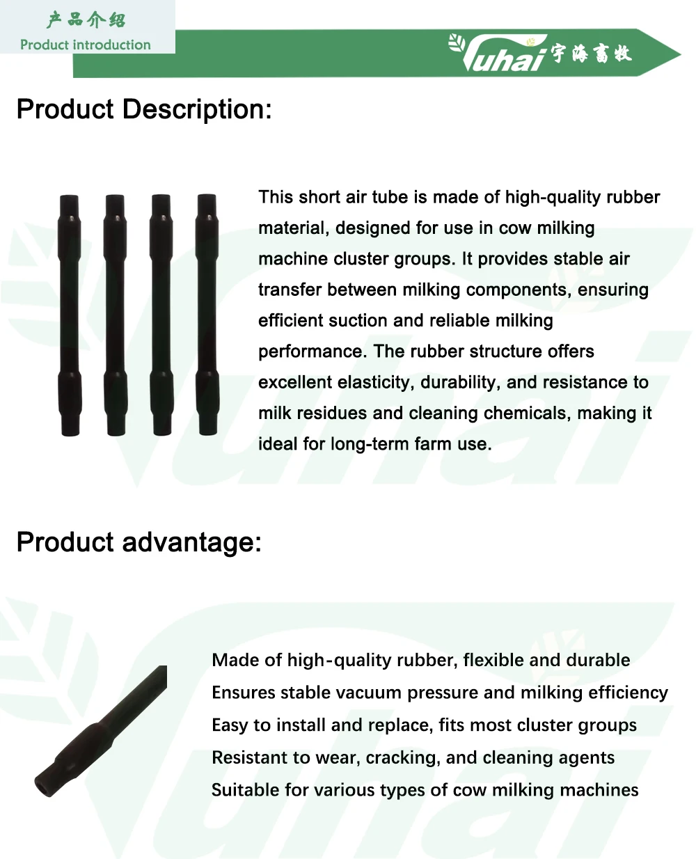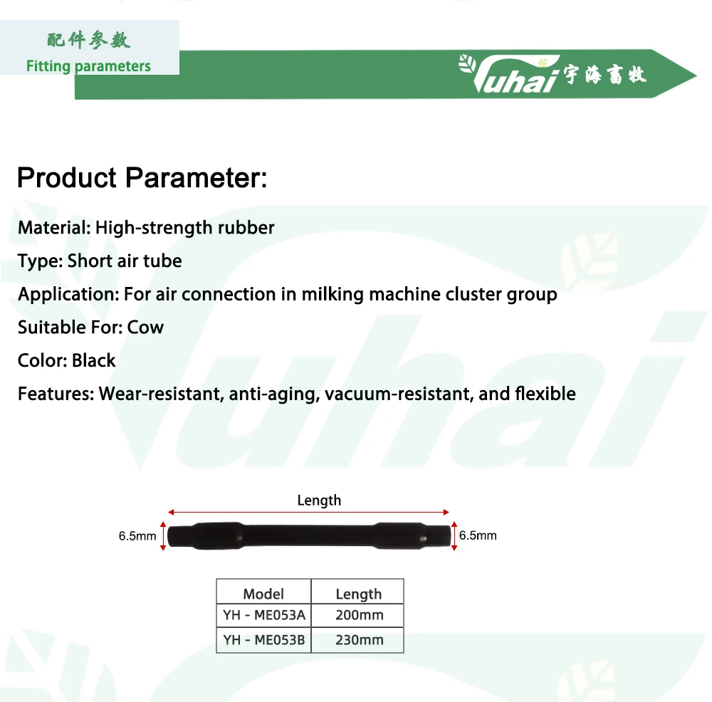 Gumi anyagból készült rövid levegőcső tehénfejőgép csoportalkatrészekhez