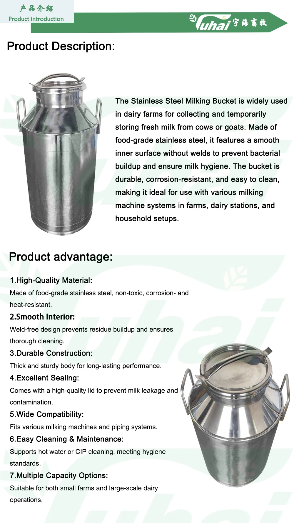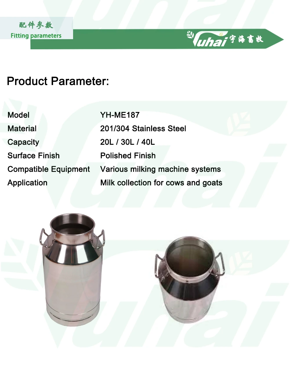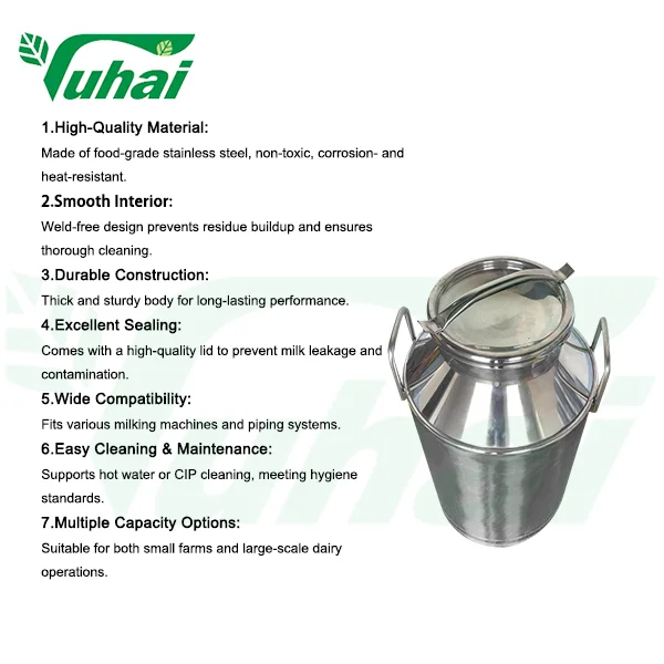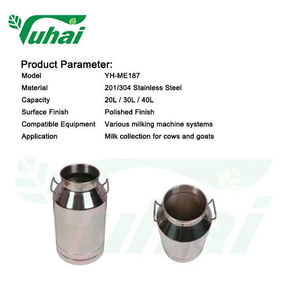 Németlennel acél tejedény 20 L/30 L/40 L | Élelmiszerminőségű fejővödör tejfarmhoz | YUHAI fejőgép tartozékok