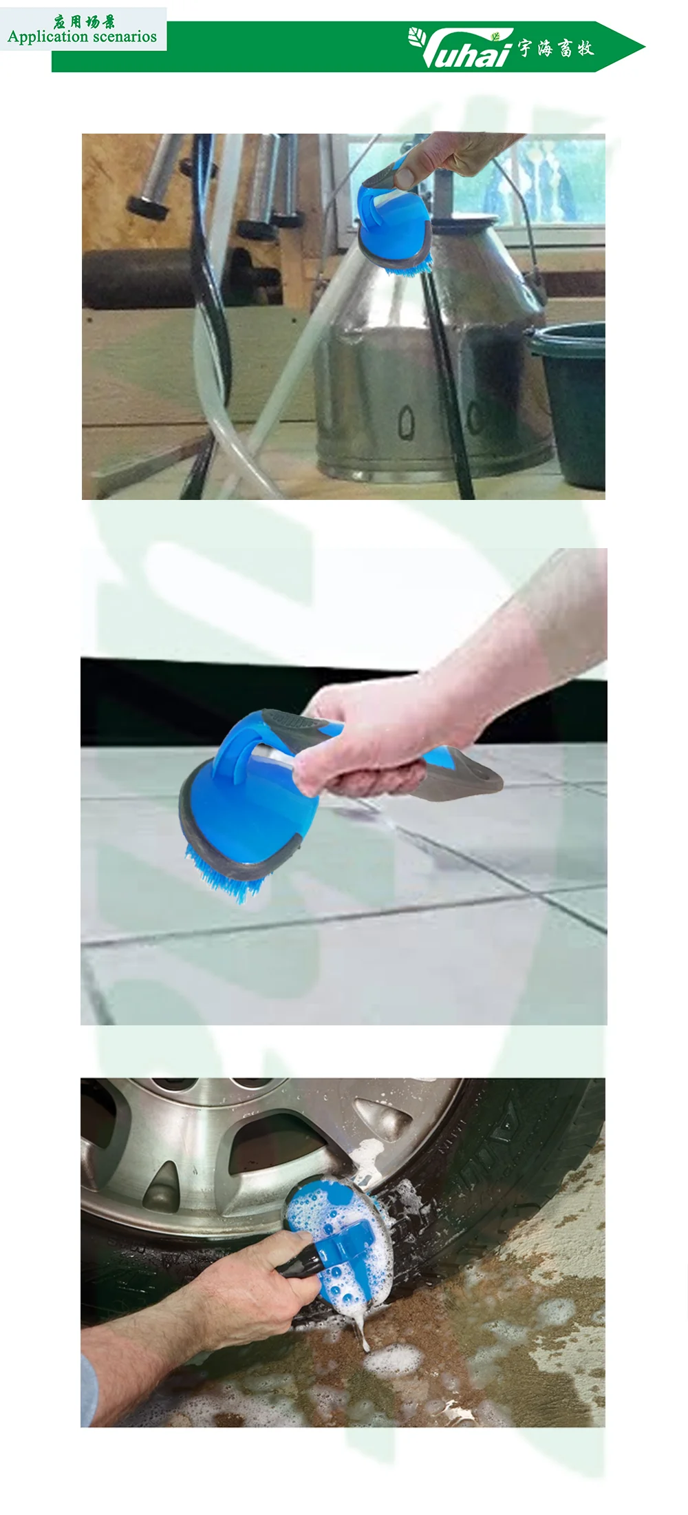 손잡이 있는 젖소 장비용 PA 소재 청소 브러시, 우유 기계 브러시