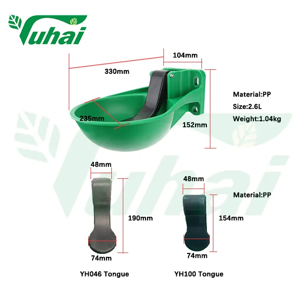 New 2.6L Vertical Tongue Nipple Drinking Bowl for Horses Cows Pigs Stainless Steel Water Dispenser PP