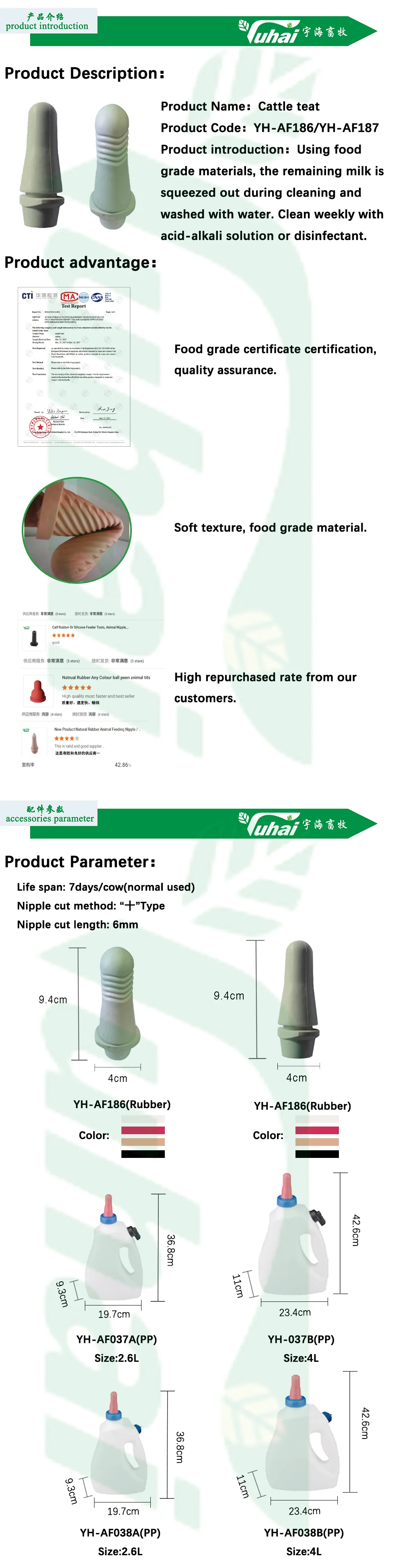 В: У вас есть услуга образцов? A: Конечно, у нас есть. У нас есть услуга образцов для всех наших продуктов и некоторые даже бесплатные образцы например, наш звездный продукт — соски для телят/насадки для коз. С радостью ждем вашего первого заказа.